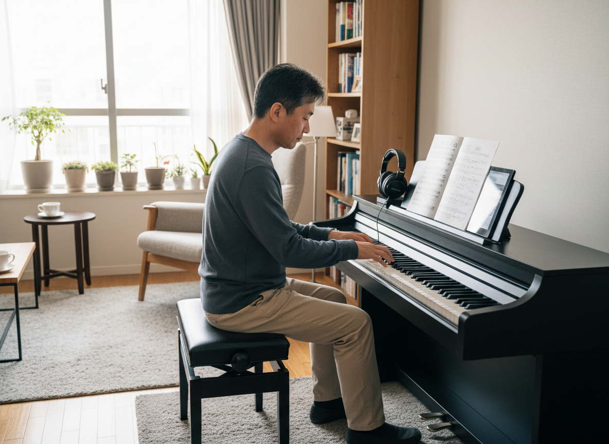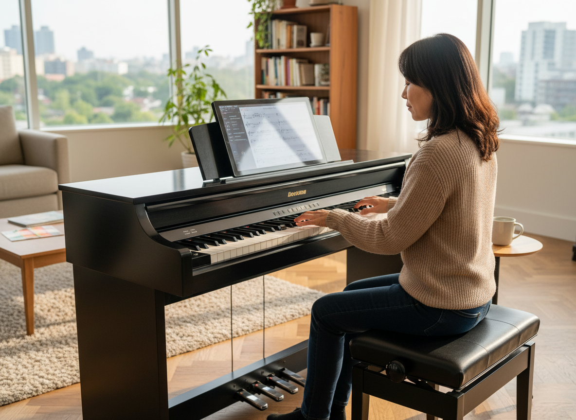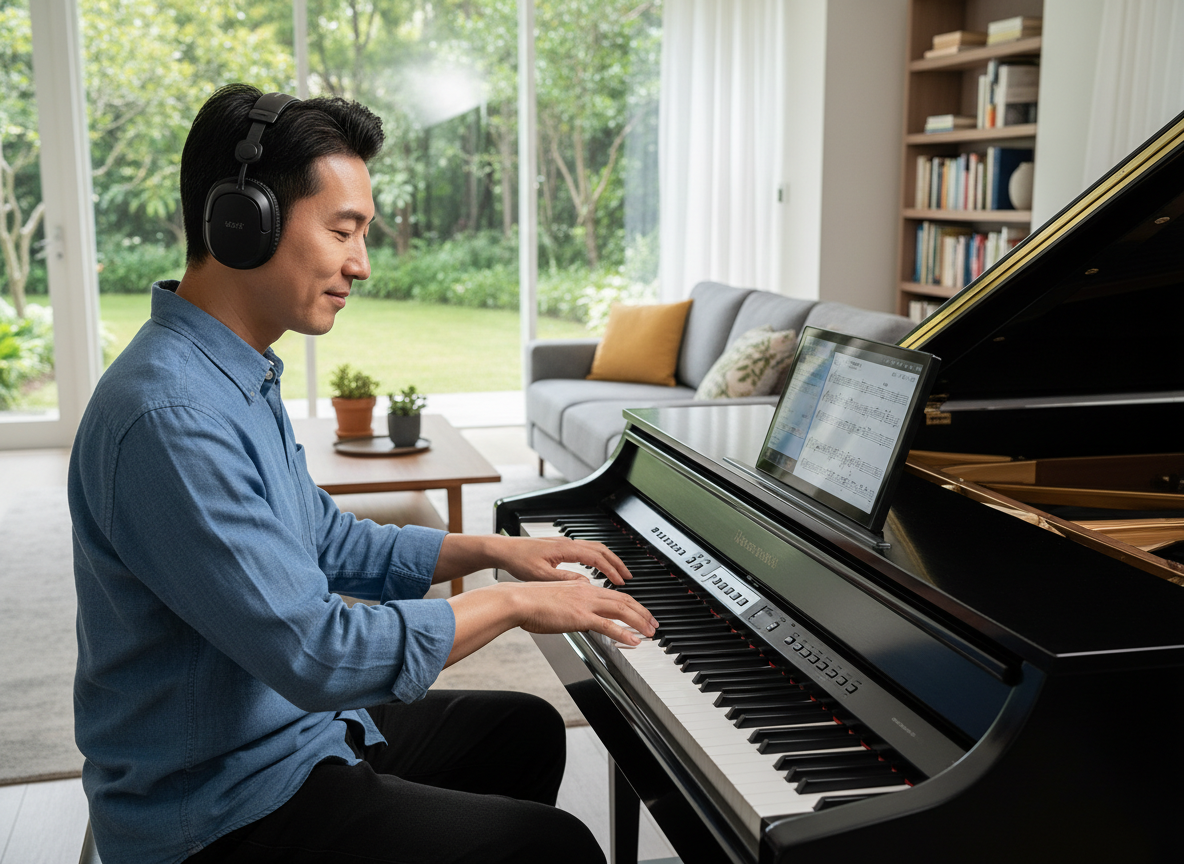 許多成年人會搭配線上課程、教學影片、互動 App 與錄音回放等功能進行自學,透過科技輔助來建立起節奏感與手指控制,讓鋼琴練習更具效率。這也是為什麼越來越多人在網上搜尋「電鋼琴自學」、「成人鋼琴自學方法」、「在家學鋼琴可行嗎」等相關問題的時候都能夠迎刃而解。